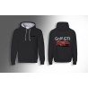 Sudadera con capucha bicolor de doble tejido, con cordón contrastado ajustable, cubrecosturas en el cuello y bolsillo canguro. Punto canalé con elastano 1x1 en puños y cintura.